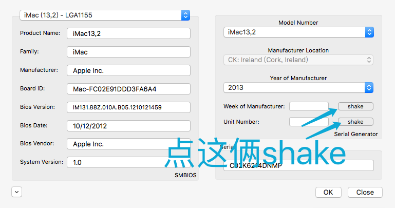 • 点击shake随机生成serial码