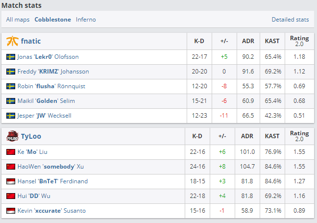 今天,虽败犹荣的是FNATIC,他们运气不好,实力也不够,败给了28岁依然年轻的Mo,败给了锐气而灵性的somebody,败给了用线下大赛练枪的DD.