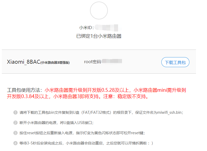 这里有些人开始着急了——我的小米路由器没有USB接口那么emmmmm,实在要刷也不是没有办法,但是刷机以后也没什么可玩性,而且过程十分复杂,这里暂时不进行讲解。
