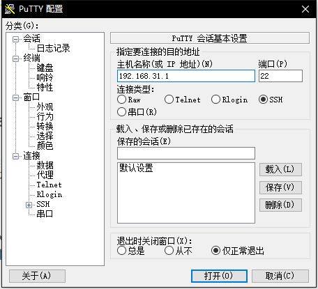 进入putty中以SSH形式连接192.168.31.1